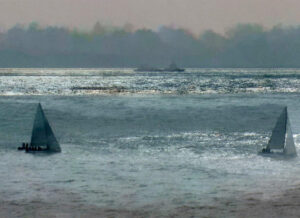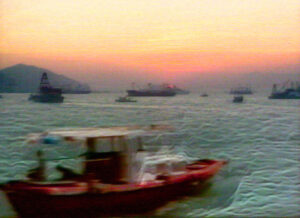Chez Patrick Bokanowski l’envolée est portée par les jeux subtils de la lumière éclaboussée par l’écume, les rayons dorés du couchant sur le sable mouillé, les ombres allongées des marcheurs sur la plage. Par l’irruption d’un projecteur cinéma et de bandes image Bokanowski nous rappelle que le voyage est cinématographique et avant tout porté par la lumière.