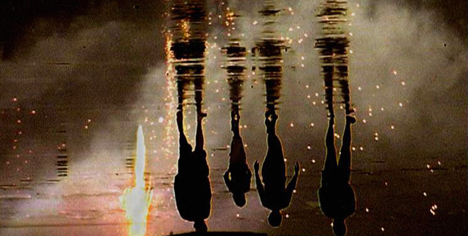 Marche vers le feu. Dans un flot incessant de lumière, personnages, paysages et objets nous entraînent vers des régions mystérieuses. Film d’animation et d’effets spéciaux.