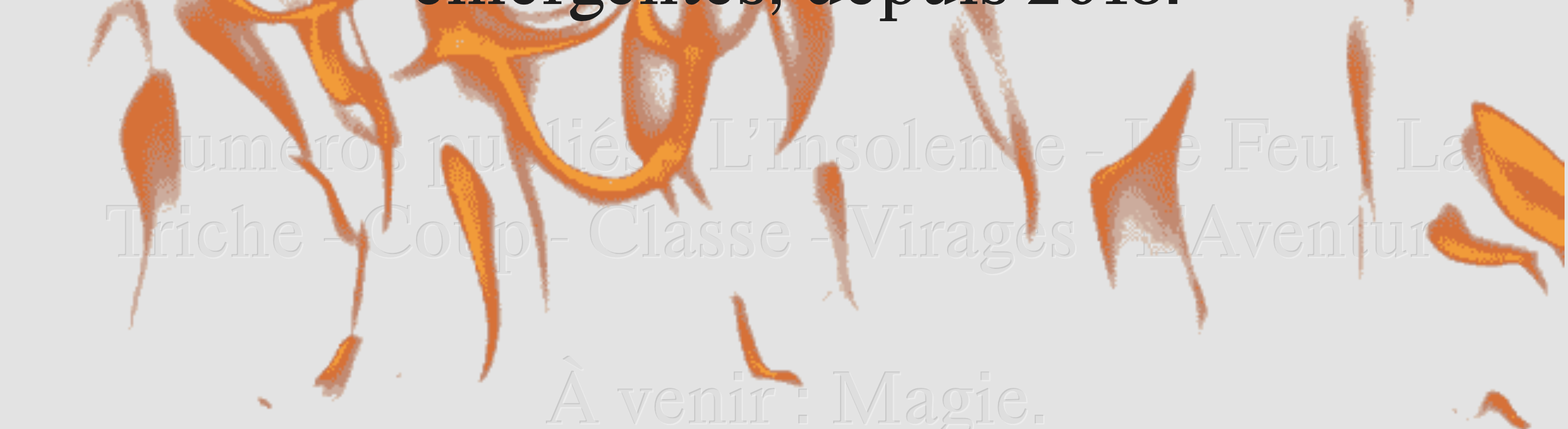 La revue littéraire l’Allume-Feu publie depuis 5 ans sa revue sous une ligne aux mille possibles : « Revue incertaine, littératures émergentes ». Et d’autres raisons d’être : publier une revue papier, défendre la création et l’édition indépendante. Se laisser surprendre par la littérature en train de se faire. Avec une attention particulière aux formes rares, non-conventionnelles, étonnantes. L’idée est simple : partir d’un mot, en forme de thème et d’invitation à écrire. Rassembler les textes et les sensibilités. Pour enfin, mettre le tout en scène entre les pages, avec les couleurs, les images, les caractères et les inspirations. Voilà la revue l’Allume-Feu, et pour chaque numéro, une preuve de vie.