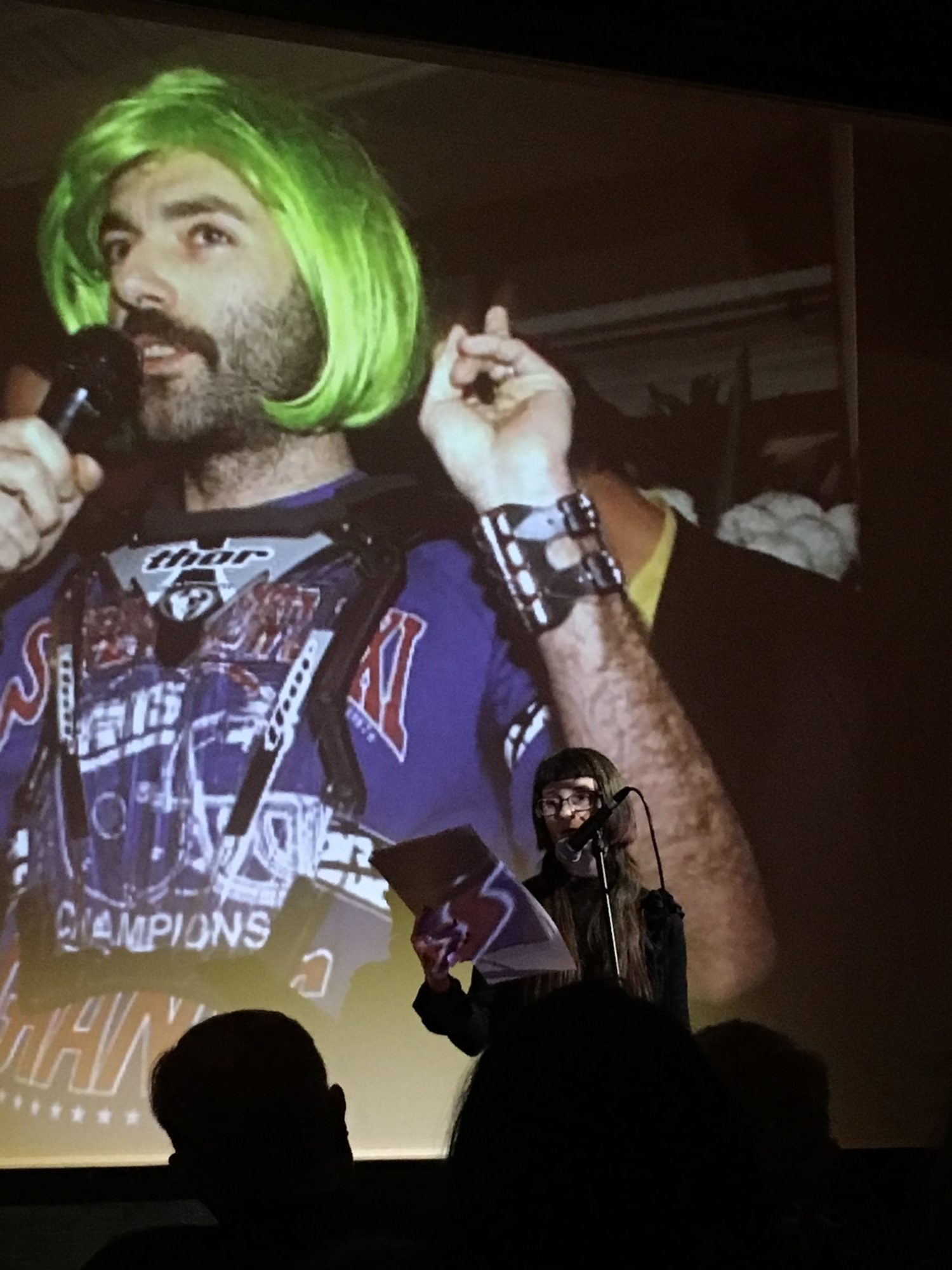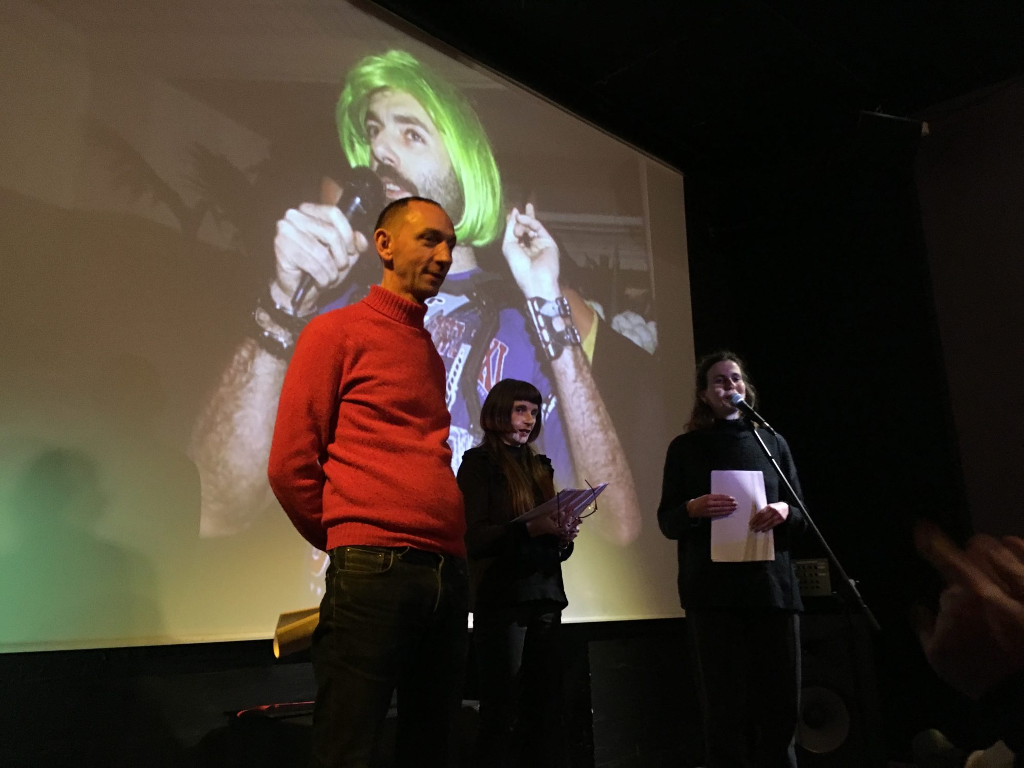 Le Videodrome 2 a eu le plaisir de recevoir le cipM (centre international de poésie Marseille) pour une séance spéciale au cœur du cycle consacré à Guillaume Dustan, samedi 8 février. Le public venu nombreux a pu goûter les lectures de Béatrice Cussol et Philippe Joanny précédant les films. Se relayant au micro, ils ont lu les quatrièmes de couverture de livres parus dans la collection « Le Rayon« . Cette collection créée par Guillaume Dustan chez les éditions Balland en 1999 et active jusqu’en 2003 est la première collection entièrement LGBTQ éditée en France. Cette lecture a rendu un bel hommage à la grande diversité d’ouvrages et d’auteur.trice.s qui se côtoient au sein du Rayon. Elle s’est poursuivie avec des extraits entrecroisés de leurs écrits respectifs : Pompon, de Béatrice Cussol (paru au « Rayon ») et Bijou (inédit), de Philippe Joanny.