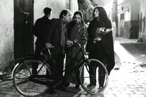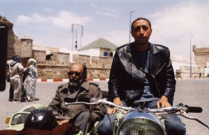 Enfin, Le cheval de vent de Daoud Aoulad Syad, réalisé en 2001, raconte l’amitié entre Tahar, un vieil homme qui à la suite d’un rêve veut s’en aller mourir sur la tombe de sa femme, et Driss, un jeune homme à la recherche de sa mère. Aussi fragiles l’un que l’autre, ils vont traverser le Maroc en side-car, checun cherchant ses fantômes. Ce « road movie » intérieur, voyageant dans des paysages de silence, est lui aussi né d’une rencontre : entre le photographe Daouad Aoulad Syad et le poète Ahmed Bouanini que nous avons cité plus haut, et dont les mots viendront emporter ce récit : « Le Cheval de vent est une parabole picaresque. À l’errance, je préfère la quête. Toutes les histoires commencent par un voyage : voyage vers un horizon plus clément, voyage au bout de soi-même. Rien n’est trop sombre, tout est clair-obscur. Le poétique et le fantastique naissent d’emblée de la réalité. »