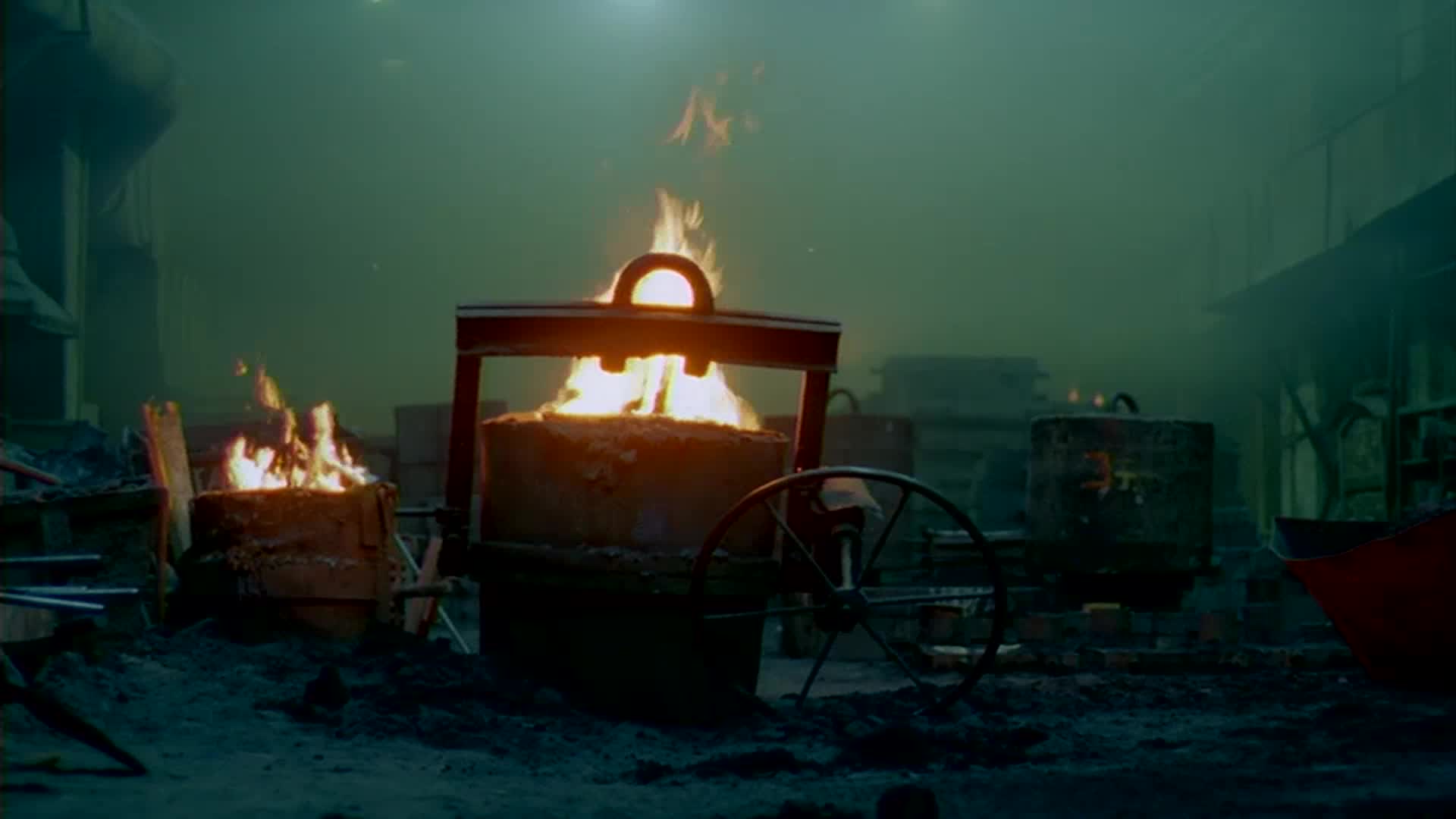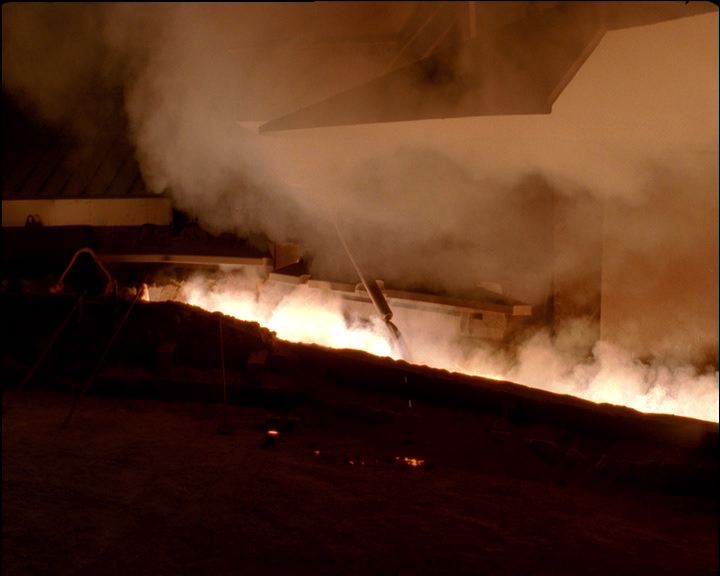 Les hommes filmés dans cette usine, semblent être des chevaliers enfermés au cœur d’un volcan.