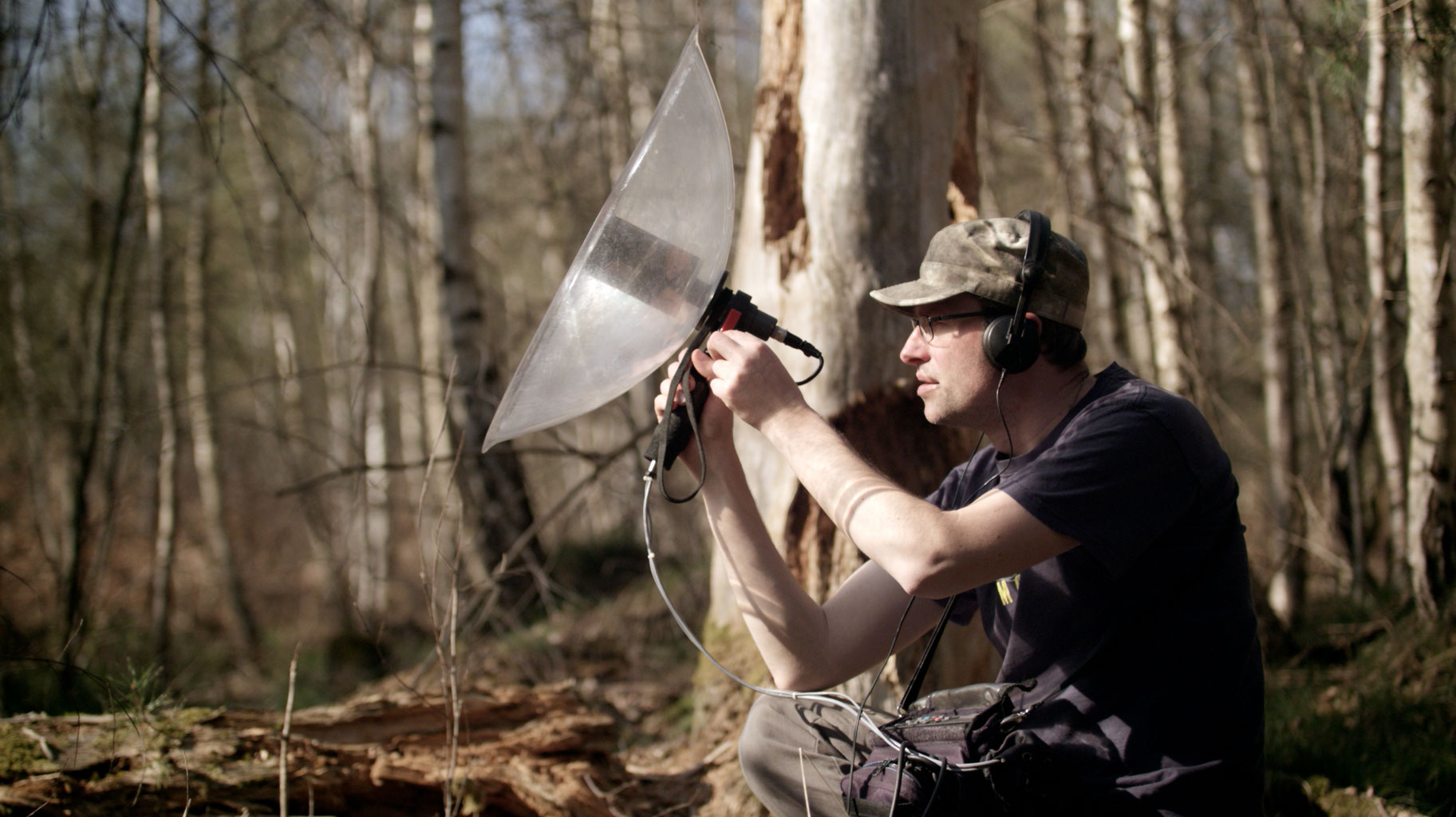 À la tombée du jour, Marc camoufle ses micros dans un sous-bois. Toute la nuit, il capte des ambiances – souffles, chants, hurlements ou craquements –, qu’il retravaille en studio pour composer des paysages sonores. Comme son père, qui l’enregistrait lorsqu’il était enfant, Marc capte les voix de ses filles et transmet sa passion du son à l’aînée, Lucie. Il partage sa bibliothèque sonore avec des artistes, comme le compositeur Christian Zanési.