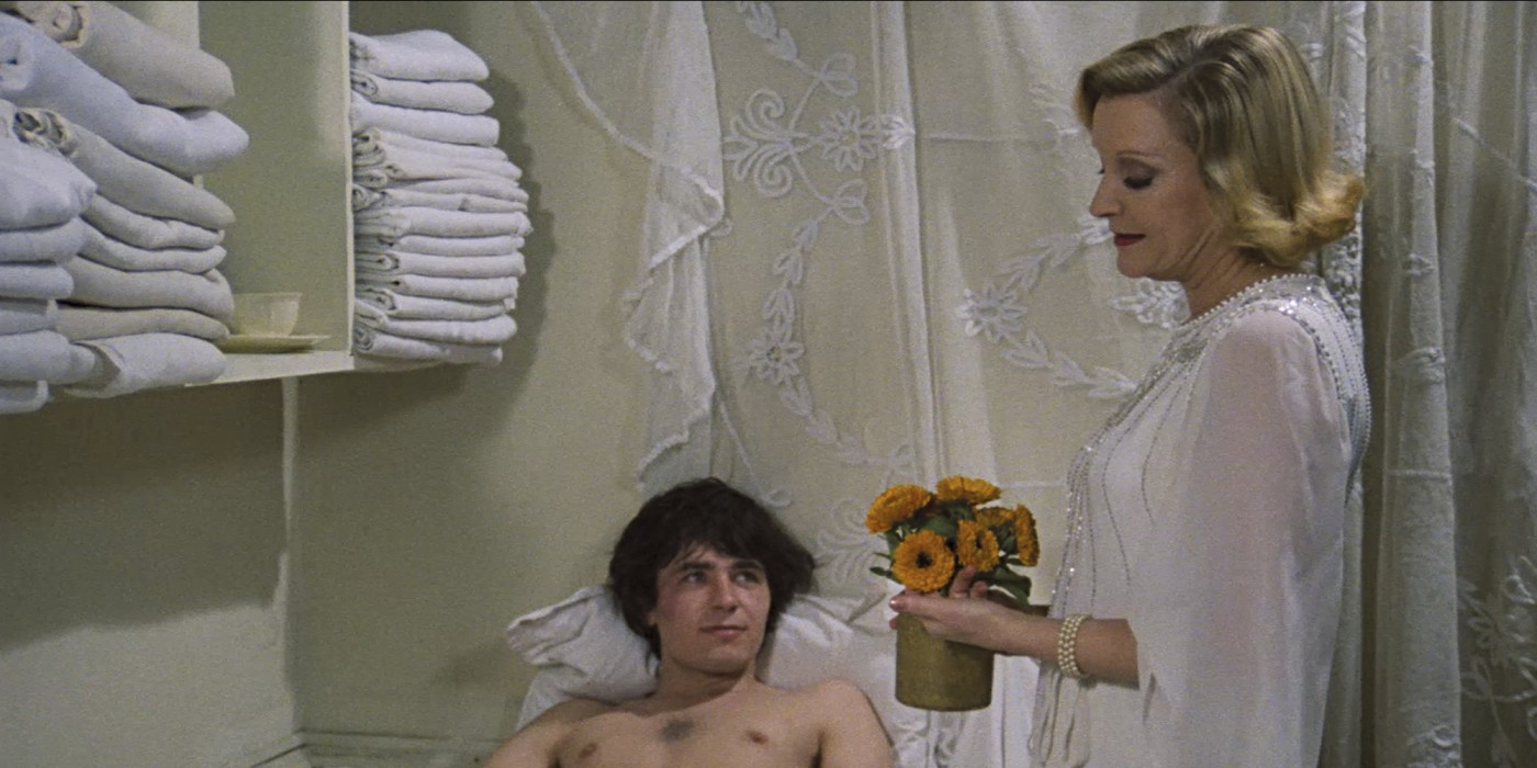 Un certain refus du naturel se dégage du jeu des acteurs, et notamment à travers leur attitude face à la caméra. Ce sont surtout les corps des bourgeois, dont le personnage d’Hélène est l’incarnation par excellence, qui par leurs postures recherchées et leurs gestes hiératiques confèrent aux images une esthétique picturale classique que renforcent les couleurs profondes de l’image de Georges Strouvé[1]. Les références y sont d’ailleurs nombreuses : sur les murs des nombreuses pièces du grand appartement d’Hélène sont affichées photographies et tapisseries en tous genres. À l’image des tableaux qui ornent son environnement, Hélène prend la pose et se contemple intérieurement. Ainsi, ces corps aux attitudes figées de statues s’opposent aux mouvements précis de Camille dont la chorégraphie rappelle les personnages bressonniens de Pickpocket ou d’Un condamné à mort s’est échappé. Corps (social) étranger, Camille affiche, lui, un rapport au monde qui passe avant tout par le labeur et des aptitudes manuelles. Ses gestes qui sont ceux d’un ouvrier aliéné par le travail sont pourtant considérés par le fils d’Hélène comme l’expression même de la liberté ; lui, a renoncé à sa position sociale de fonctionnaire qu’il considère comme aliénante. À travers Camille, il fantasme la supposée liberté de l’homme prolétaire, mais se fait pourtant servir par ce dernier, inscrivant donc la soumission au cœur de leur rapport.