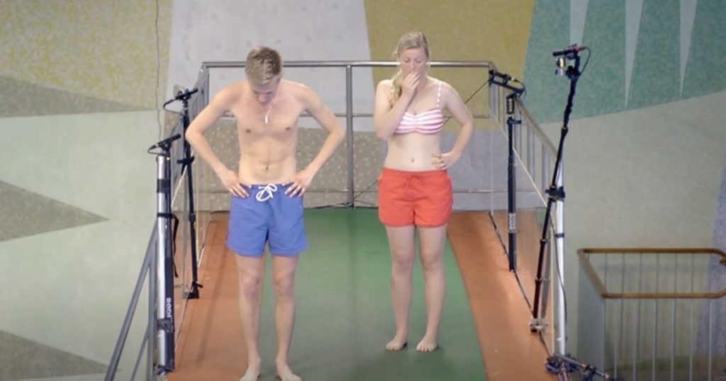 Un plongeoir de dix mètres de hauteur. Les gens montent : sauter ou descendre ? La situation met en évidence un dilemme : endurer la peur instinctive de faire le pas ou l’humiliation d’avoir à descendre. « Hopptornet » se présente comme une étude divertissante sur l’humain en position de vulnérabilité.