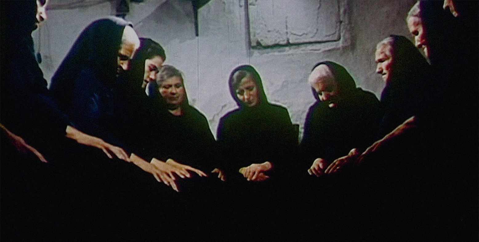 Cette éloge funèbre, inspirée du cinéma soviétique et de l’oeuvre ethnologique d’Ernesto De Martino, constitue un des derniers témoignages d’un chant funèbre en « griko » (dialecte d’origine grecque de la région des Pouilles), entonné par des femmes, véritables « professionnelles du sacré » du village de Martano. Le texte est une traduction libre et hautement poétique de Pier Paolo Pasolini, collaborateur fréquent de la cinéaste. La voix de l’actrice italienne Lilla Brignone, par sa déclamation poignante, fait écho au tragique de l’eulogie croissante jusqu’à la frénésie. Le texte laisse entendre un renversement du rapport entre le mort et les vivants en faisant allusion au défunt comme un enfant nécessitant des soins quotidiens qu’il n’aura plus à force d’avoir quitté le monde des vivants: un déploiement idiomatique et archéen du thème de la Mater dolorosa et du culte marial omniprésent dans l’Europe méridionale.