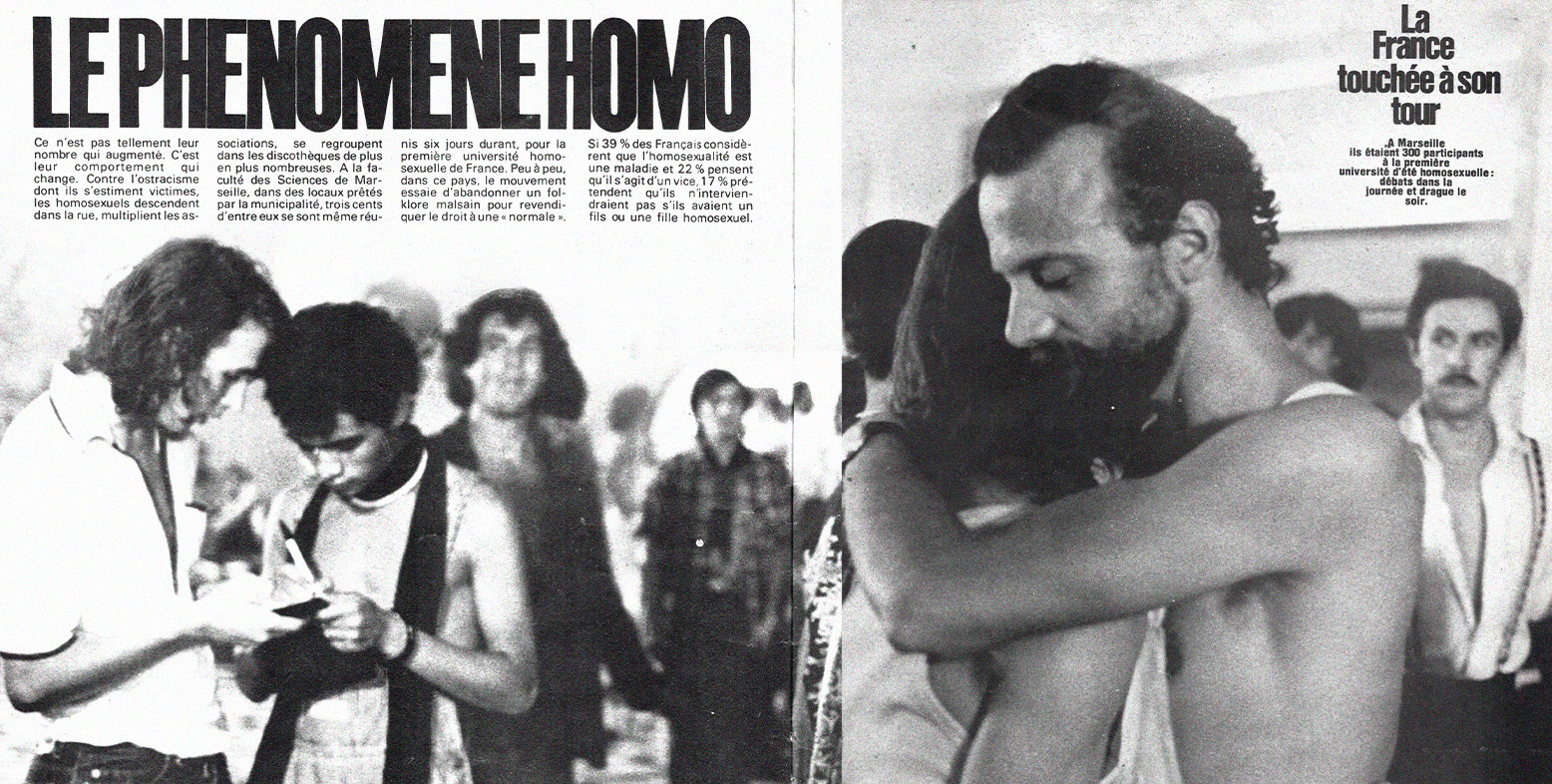 1979, c’est la première édition des UEEH. On voit les participant·es arriver et manifester à la gare Saint-Charles, se baigner à la calanque de Sugiton, et danser à l’Alhambra, une salle des fêtes à la Blancarde aujourd’hui fermée. 1981, le Groupe de Libération Homosexuel de Marseille (GLH) se réunit à Marseille, rue de la Palud. 1999, c’est la reprise des UEEH, entre ateliers, fêtes et concerts. On termine avec un entretien sur le campus de Luminy avec Christian Deleusse et Jacques Fortin, les cofondateurs des UEEH.