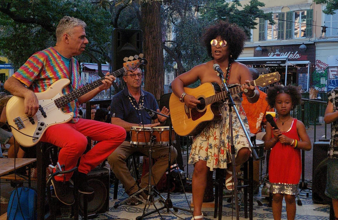 Le duo Jamila & Cheikhou a créé un style unique (Galgui musik) croisant les langues et cultures, pour faire jaillir la vie dans toute ses facettes. Chant, guitare et percussion vous feront vibrer de toute votre humanité. Et pour courroner le tout leurs enfants Malak et kiné accompagnent leur parents pour vous dire que Galgui musik est une histoire de famille, une musique de transmission d’une génération à une autre.