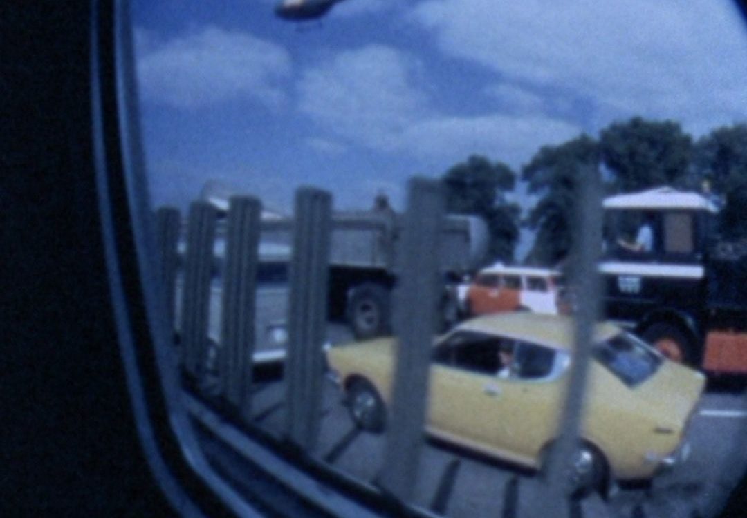 Le spectateur est transporté dans de lentes déambulations au fil du propos du cinéaste. Vastes paysages nimbés de vapeurs floues dans des tons de bleu et de rose, qui dérivent flottant entre deux eaux, entre deux routes, entre deux berges. L’effet de mélancolie est intense… et pourtant quelque chose dysfonctionne, une rupture de son, un noir dans l’image, signe que le film auquel nous assistons n’est pas celui auquel nous pouvions nous attendre. Klaus Wyborny va construire son film sous nos yeux dans une courbe crescendo/decrescendo. La montée se fait lentement, les séries de paysages divers se succèdent, se heurtent, se brisent avec les discordances brutales du son. Les battements se précipitent avec des interventions sophistiquées sur l’image, la variation des coloris, l’alternance des séries positives/négatives. Son voyage nous entraîne dans un rythme saccadé traversant les forêts allemandes, les montagnes suisses pour s’apaiser dans les rues d’une ville du Maghreb ou d’Égypte où le descrescendo s’enchaîne rapidement.