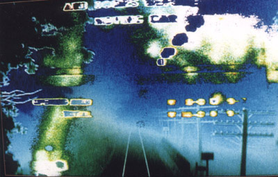 Des éclairs blancs dans l’obscurité de la nuit. Comme dessinés dans l’air, placés par petites touches. Spectres vacillants, visions fantomatiques. Un authentique voyage de la peur, un film d’angoisse.