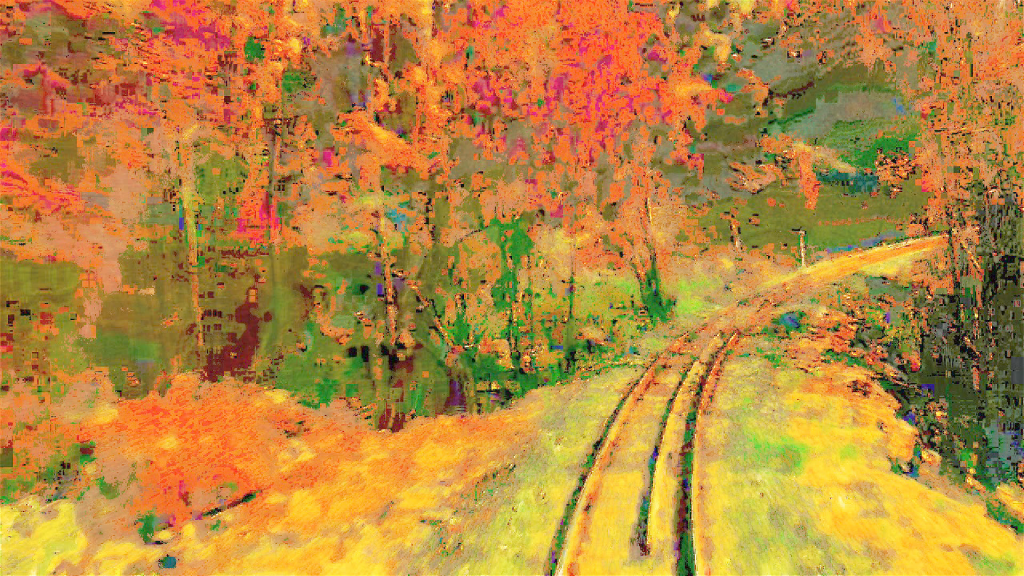 Pendant un voyage de train à travers les États Unis, la réalisatrice se voit confrontée aux conséquences psychiques d’un accident de voiture. Un film presque abstrait avec un mélange d’images travaillées à l’ordinateur, prises de vue et peintures.