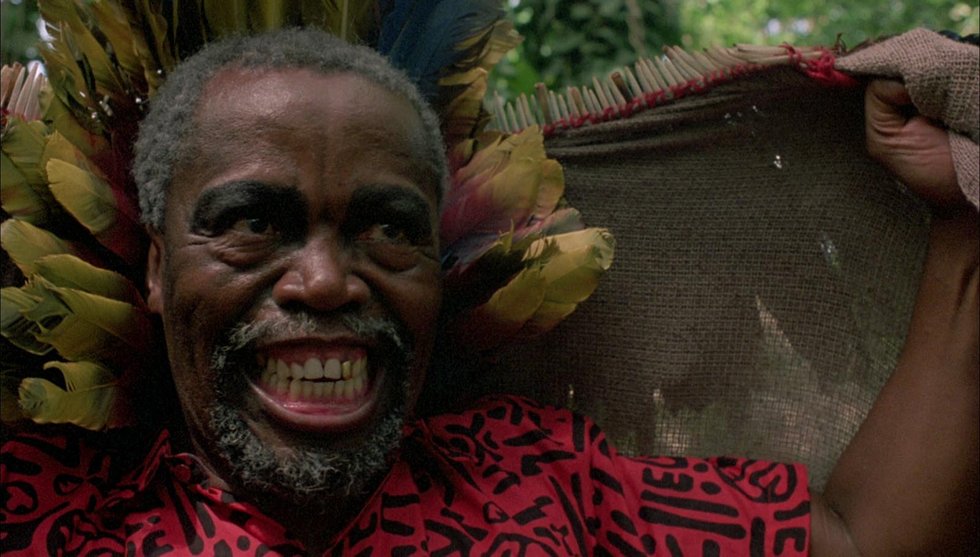 The Serpent and the Rainbow, tiré du livre éponyme du chercheur de Harvard Wade Davis, s’ouvre sur un rappel à la fois mystique et inquiétant d’une croyance vaudoue : « Le serpent symbolise la Terre, l’arc-en-ciel le Paradis. Entre les deux, toute créature doit vivre et mourir. Mais, parce qu’il a une âme, l’homme peut se retrouver emprisonné en un lieu atroce, où la mort n’est qu’un commencement. » Tout en annonçant l’épouvante par l’existence d’un antre maléfique semblable au monde parallèle de Freddy Krueger, Wes Craven donne au genre de l’horreur une dimension ethnologique rare et passionnante, dans la lignée de Cannibal Holocaust et Massacre à la tronçonneuse. Comme dans Les Maîtres fous de Jean Rouch, où le spectateur assiste tétanisé à la dévoration d’un chien roux, ce sont en effet les croyances et les rites pour la plupart réels de l’île toute entière qui deviennent effrayants en soi. En étant à la recherche d’une « poudre à zombie » capable de ressusciter des corps semblant morts depuis trois jours (poudre qui existe réellement selon Davis), le jeune scientifique Dennis Alan (Bill Pullman) plonge dans un univers imprévisible dominé par l’irrationnel, la superstition et la sorcellerie, plein de transe convulsive et de signes cabalistiques sanglants. Ainsi le long processus de fabrication de la « poudre à zombie » est l’un des sommets horrifiques du film, exigeant par exemple le broiement du crâne d’un cadavre fraîchement exhumé (autre précision qui figure réellement dans le livre du chercheur).