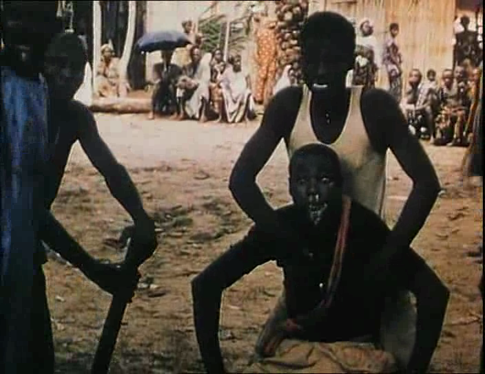 Ici les dieux ne sont pas exemplaires. Ils ne sont que parties d’un monde, éléments, incarnations d’un moment de l’histoire, périodes. Ils effraient et soumettent les humains, lesquels s’en moquent en les représentant avec ironie. Après le rite de possession, on voit les possédés le lendemain sans bave aux lèvres dans leur quotidien. Jean Rouch lève le sortilège aussi pour le spectateur. La possession n’est plus seulement un spectacle impressionnant, mais un temps très particulier que l’on peut comemncer à penser, à évaluer. Le film sera primé à Venise en 1957.