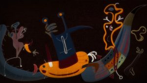Les peintures animées infiniment poétiques et dansantes de Florence Milhaie (Au premier dimanche d’août, Conte de quartier), où l’on a l’impression de voir le coups de pinceaux tellement la peinture est vivante. Les fantaisies surréalistes ou abstraites de Theodore Ushev (Sonambulo) et Norman McLaren (Hen Hop, Blinkity Blank), follement inventives. La pureté des lavis à l’encre de chine et à l’aquarelle de la série Impression de montagne et d’eau, avec laquelle le peinture caricaturiste chinois Tei Wei, autre autres peintres des studio d’art de Shanghai, nous raconte l’amitié entre un musicien et un pêcheur, les aventures des têtards à la recherche de leur maman, ou encore la fable des singes voulant attraper la lune … La sobriété de Frédéric Back qui crée avec L’homme qui plantait des arbres une véritable toile impressionniste en mouvement, inspirée par la nouvelle de Jean Giono. Les étranges films de Georges Schwizgebel, ballets de formes et de couleurs, dans lesquels la peinture est une pâte vivante qui ondule, palpite, se transforme, nous transportant comme dans un rêve, hypnotisés.
