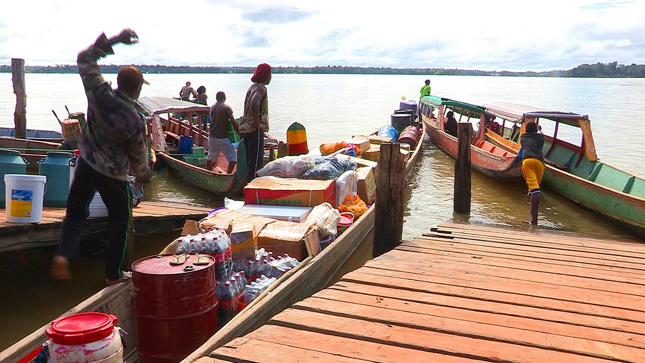 Seke est piroguier sur le fleuve Maroni, en Guyane. Il transporte des marchandises avec sa pirogue. Souvent sa cargaison dépasse les 10 tonnes et cela rend délicat les passages difficiles dans les rapides ou sur les hauts-fonds.