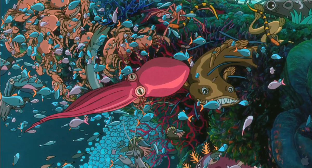 « Un monde où la magie et l’alchimie font partie du quotidien. Tout en bas, comme notre esprit inconscient, la mer, et à sa surface, l’agitation des vagues. En modifiant l’espace et en altérant les formes, la mer n’apparaît pas seulement comme le décor de l’histoire, mais comme un de ses principaux protagonistes » Hayao Miyazaki