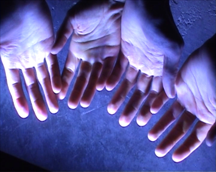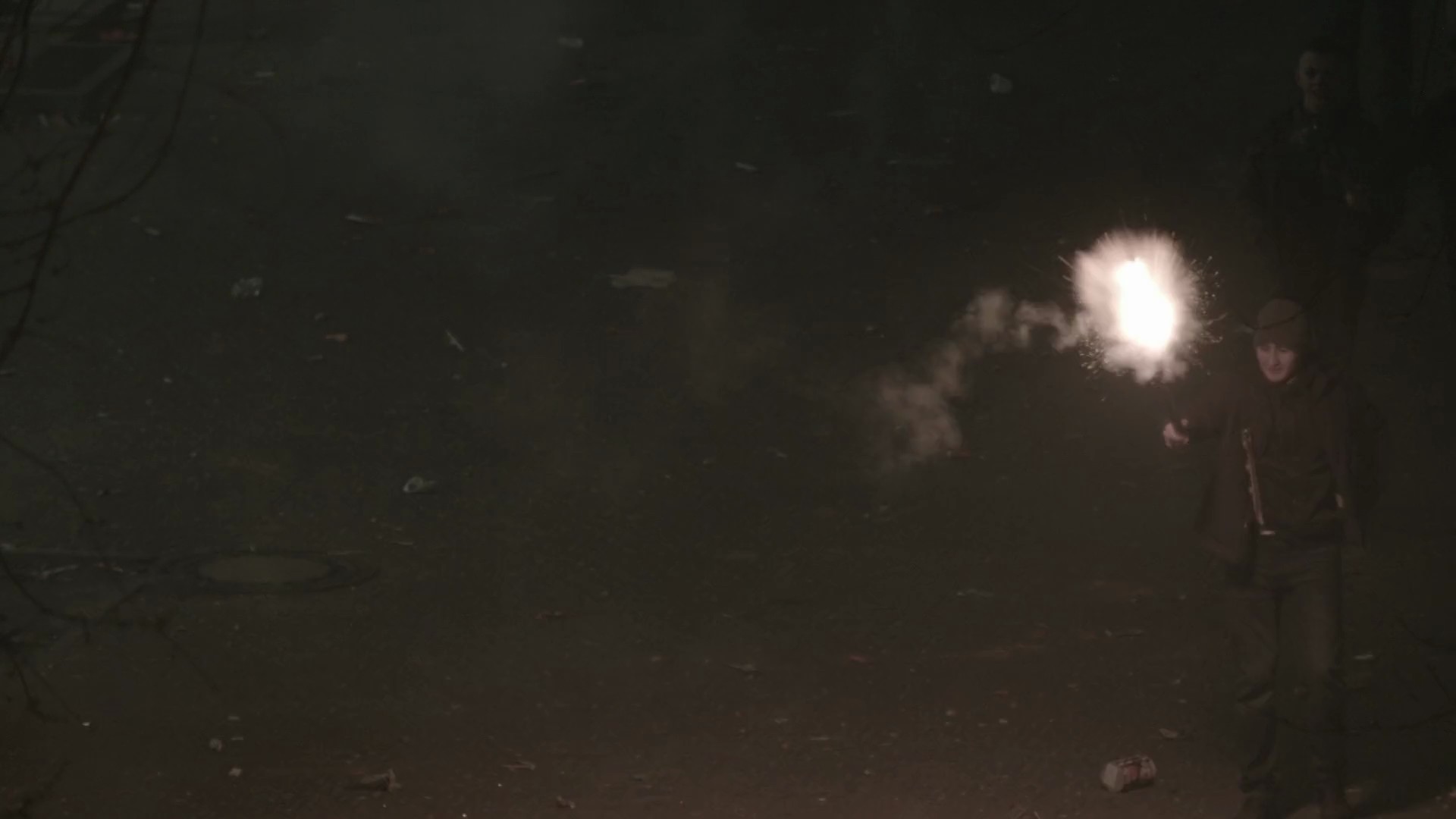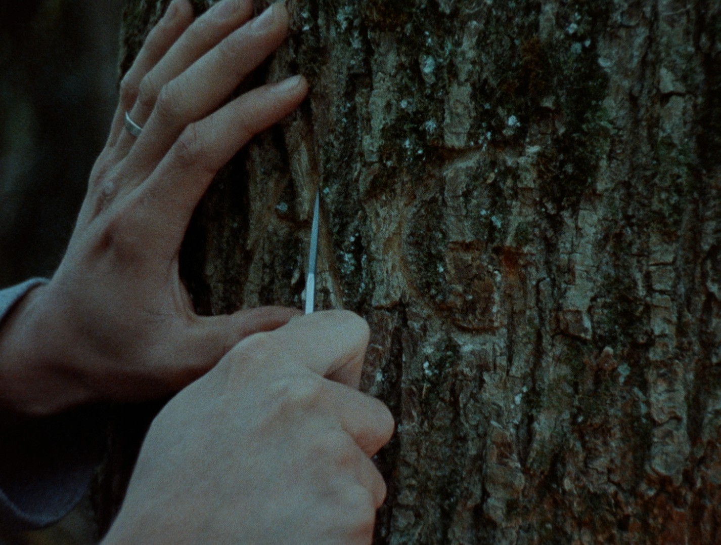 Avant qu’ils ne quittent leur village suite à la mort de Guy, les membres de sa famille saluent les territoires où ils ont grandi. Les gestes figés et les corps en meute se tendent alors la main.