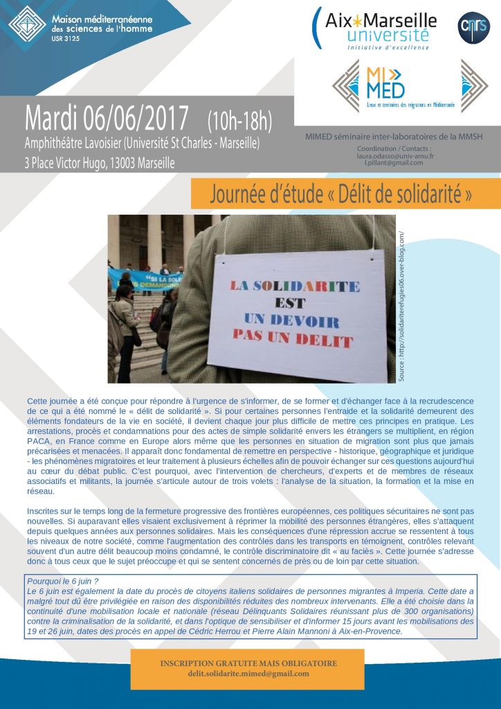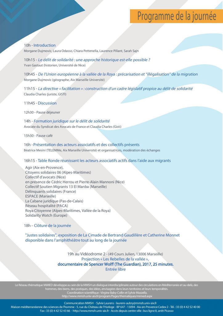 La projection de ce soir est suivie d’un débat avec des militants de la Roya et de l’agglomération marseillaise. Elle est organisée dans le cadre de la journée d’études sur le délit de solidarité organisée par le réseau MIMED, réunissant des chercheurs et chercheuses sur les migrations à la MMSH et l’Université Aix-Marseille.