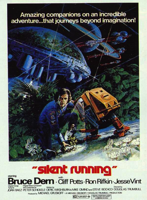 En effet, malgré ses qualités techniques, c’est surtout pour son propos que le film interpelle. Silent Running est une fable de science-fiction écologique. Issu d’une Terre que la course acharnée au commerce a poussée à l’extermination de ses ressources naturelles ; Freeman, malgré son rejet de l’humanité, porte en lui cette même pulsion destructrice. Il n’hésitera devant rien pour protéger les derniers vestiges de notre flore, en véritable terroriste écologique, qui promeut le sauvetage de la Nature plutôt que des Hommes. Le film ne s’attache pas à montrer les raisons de la catastrophe terrienne, pas plus qu’il ne propose de découvrir de nouveaux espaces ou civilisations ; au contraire, il nous enferme dans la folie d’un homme qui se bat pour un idéal oublié du monde. Seul avec ses deux droïdes, Freeman leur parle, joue avec eux, en vient à leur prêter des émotions. Il est en orbite autour de Saturne, persuadé d’être un homme libre (« Freeman ») oublié de la Terre et de ses supérieurs…