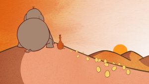 Prenez trois animaux de la ferme, de la jungle et du désert. Ici, une poule, un éléphant et un serpent. Mettez-les ensemble. Secouez ! Vous obtiendrez une fable savoureuse, pleine d’action et de délire.