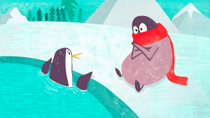 Un pingouin trouve la banquise trop froide à son goût et décide de se rendre sous les cocotiers. Là-bas, il pourra enfin bronzer ! Mais c’est très chaud les Tropiques, et puis les fruits lui donnent la colique. Finalement, le toboggan sur l’iceberg avec les copains, ce n’est pas si mal…