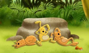 Par une belle après-midi d’été, trois lièvres font la sieste au beau milieu de la jungle quand retentit derrière les feuillages un bruit étrange. Pris de panique, les rongeurs s’enfuient, entraînant dans leur sillage tous les animaux de la jungle. Seul le lion saura les arrêter en révélant, bien malgré lui, l’origine de cette folle rumeur.