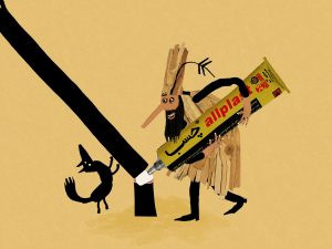 Une nuit, il rêve que la police est à ses trousses pour arrêter le voleur d’arbres. Il est réveillé en sursaut par une tempête qui détruit sa maison. Au petit matin, une maman corbeau et son petit viennent le voir. Pris de remords, il décide de réparer à sa manière la forêt pour qu’elle soit aussi belle qu’avant et, que les oiseaux y nichent à nouveau.