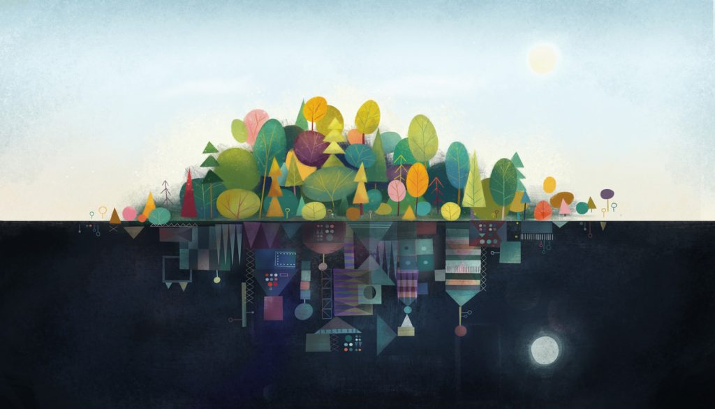 Généralement, dans les jardins on a l’habitude de cueillir des pommes, des cerises ou encore des pêches, mais dans ce jardin ce sont des poissons qui poussent sur les branches des arbres.