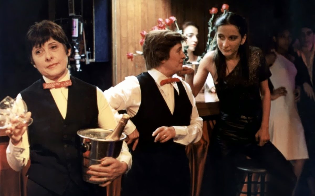 Dans cet espace clos, Marie-Claude Treilhou construit avec une économie de moyens (changements d’axes précis et travellings raffinés) une éblouissante scénographie de circulations et de paroles télescopées. Le film fourmille de seconds rôles inoubliables, qui parviennent tous à exister le temps d’une scène, d’un passage, d’un mot lancé ou d’une gestuelle silencieuse. Théâtre des solitudes désirantes, qui se renverse, lors du deuxième acte, en son double féminin : une boîte lesbienne où Simone se rend après le travail, pour retrouver celle qu’elle aime, une serveuse qui la mène en bateau. Autour d’elle accoudée au bar, c’est une nouvelle ronde qui reprend de plus belle, entre les allées et venues des entraîneuses, les ritournelles tristes d’un orchestre de garçonnes décrépies, les performances d’une chanteuse punk-rock (Josse, du groupe 12°5) ou d’amazones s’affrontant sur un remix de Moussorgski… Simone patiente et voilà toute son histoire, banale et déchirante : elle se languit d’amour, elle attend, seule dans la nuit fluorescente. Et l’on n’aura pas besoin d’en savoir plus, pour surprendre dans son regard l’essentiel : le lent progrès de la lassitude et de la désillusion sur la soif de vivre.