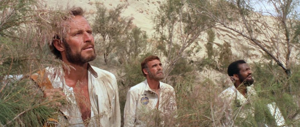 Dès les premières minutes du film, lors d’un monologue déclamé par Heston d’une voix rauque – il était grippé lors du tournage, et la production a trouvé que cela donnait plus de caractère à son personnage – la thématique principale du film est posée. Taylor, abandonnant la Terre et son époque dans l’espoir de découvrir une civilisation “meilleure”, s’adresse à l’humanité dans son dernier rapport avant l’hibernation.