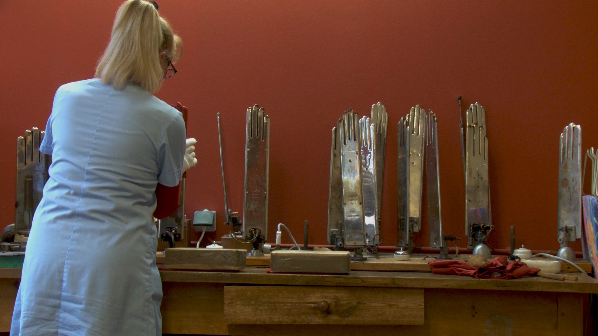 Soient trois lieux. 1. Un atelier situé en Allemagne où l’on suit la fabrication d’une prothèse de la main. 2. Un atelier de confection de ganterie traditionnelle à Millau, dans le sud de la France. 3. Une usine de jeans à Istanbul, production industrielle à grande échelle. Trois espaces de travail qui se succèdent, mais une manière et un objet communs : les rapports entre main et machine, travail et matière, observés avec patience et rigueur. Des relations et des gestes que Daniel Eisenberg s’emploie à scruter méticuleusement, attentif à chaque action que cela engage et au temps nécessaire à chaque opération, du commencement aux formes achevées. Eisenberg poursuit ici le projet engagé dans son précédent volet, The Unstable object (FID 2011), où il confrontait, par triangulation déjà, le travail dans une usine automobile high tech à Dresde, puis dans un atelier désuet de réparation d’horlogerie à Chicago, enfin dans une fabrique de cymbales à Istanbul. Ici, place est faite aux mains, au corps, à l’image, d’un lieu de production à l’autre : corps reconstitués, corps modelés, corps habillés. Au corps social aussi, que ce soient les corps collectifs au travail ou leurs images façonnées par les objets dont on suit la fabrication. La patience d’une caméra attentive et le rythme fascinant de cette chorégraphie permettent aux gestes de se déployer. La géographie des modes de production engage aussi l’histoire qu’elle sous-tend, comme celle de la mondialisation des échanges. Et, crucial ici, au temps de la production des objets eux-mêmes semble répondre celui du spectateur face au déploiement du film, comme un écho entre regards absorbés, les leurs comme les nôtres. Un beau travail du regard et de la pensée en acte sur le travail, objet bien instable.