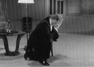 Pour autant, en 1996, les Straub-Huillet en viennent à poser les pieds sur les planches d’un théâtre vide, sans spectateur, afin de réaliser Du jour au lendemain, le premier opéra dodécaphonique de Schoenberg, supervisé encore une fois par Gielen. Traité dans un autre registre, parfois même avec humour, les cinéastes conservent leur ton grinçant, qui appelle à la résistance du spectateur comme sur le second plan du film où l’on peut lire, tagué sur un mur : « où gît votre sourire enfoui ? ».